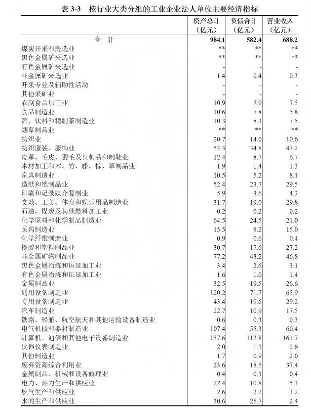 表3-3 按行业大类分组的工业企业法人单位主要经济指标