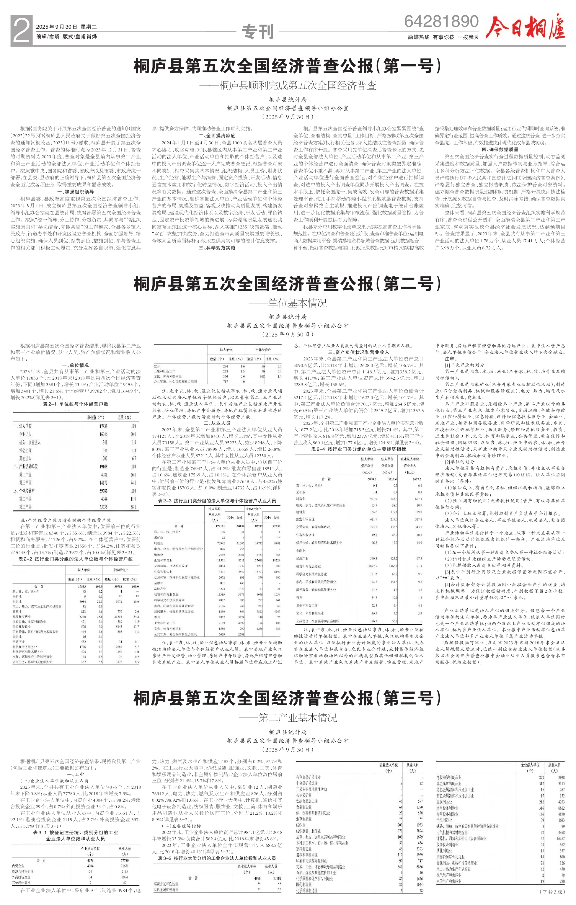 桐庐县第五次全国经济普查公报(第三号)