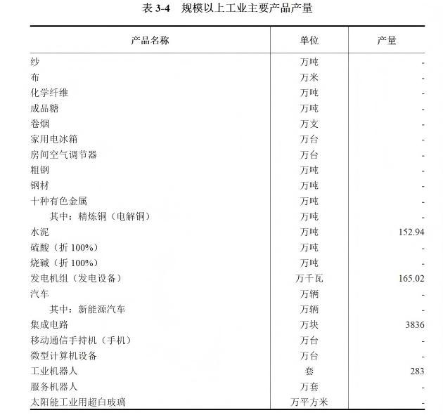 2023年,规模以上工业主要产品产量详见表3-4。