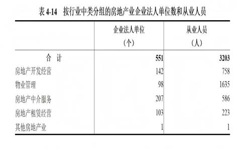 2023年末,全县房地产业企业法人单位从业人员3203人,比2018年末增长10.0%。其中,房地产开发经营企业758人,比2018年末下降34.2%;物业管理企业1635人,比2018年末增长63.2%(详见表4-14)。
