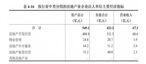 2023年末,全县房地产业企业法人单位资产总计549.1亿元,比2018年末增长110.5%。其中,房地产开发经营企业408.8亿元,物业管理企业24.8亿元,房地产中介服务企业64.2亿元,分别比2018年末增长69.5%、79.7%和991.0%。房地产业企业法人单位负债合计423.2亿元,比2018年末增长101.0%。