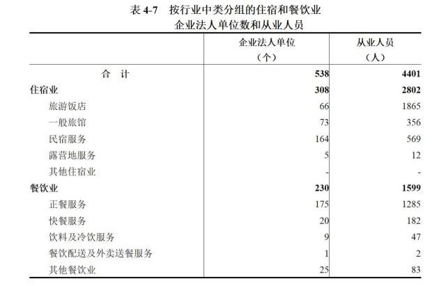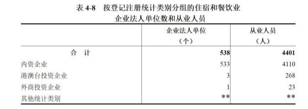 表4-8 按登记注册统计类别分组的住宿和餐饮业