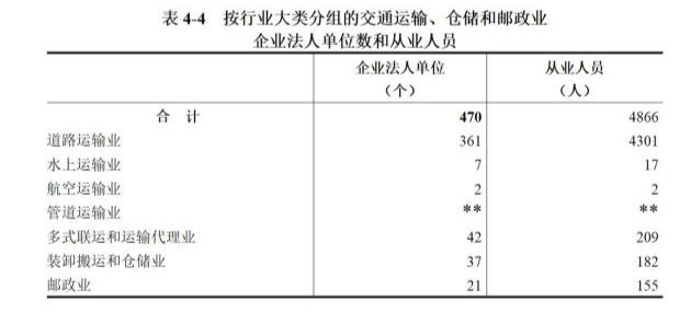 表4-4 按行业大类分组的交通运输、仓储和邮政业
