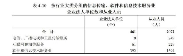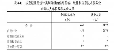 表4-11 按登记注册统计类别分组的信息传输、软件和