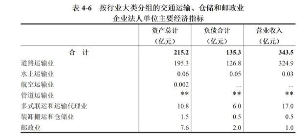 表4-6 按行业大类分组的交通运输、仓储和邮政业