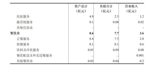 2023年末,住宿和餐饮业企业法人单位资产总计49.5亿元,比2018年末增长40.1%;负债合计46.7亿元,比2018年末增长64.5%。
