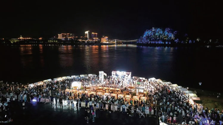 秋夜微风拂过江面,市集“食、赏、玩、购、忆”五大主题区域错落分布,八十个特色摊位串联起烟火气与文艺感,邀您解锁一场关于美食、音乐与互动的沉浸式体验。