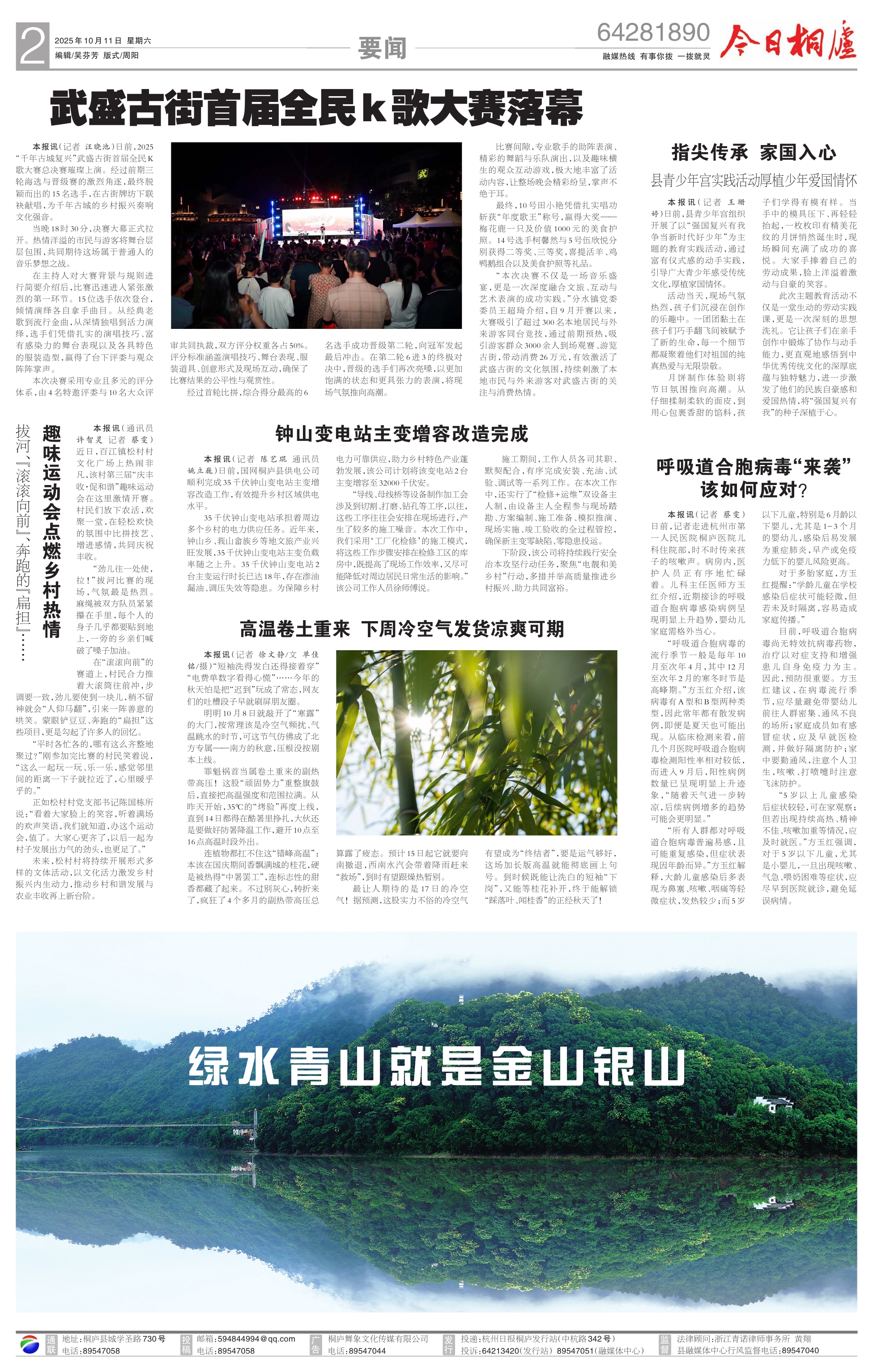本报讯(记者 汪晓池)日前,2025“千年古城复兴”武盛古街首届全民K歌大赛总决赛璀璨上演。经过前期三轮海选与晋级赛的激烈角逐,最终脱颖而出的15名选手,在古街牌坊下联袂献唱,为千年古城的乡村振兴奏响文化强音。