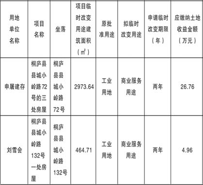 桐庐县规划和自然资源局临时改变用途缴纳收益金项目公示