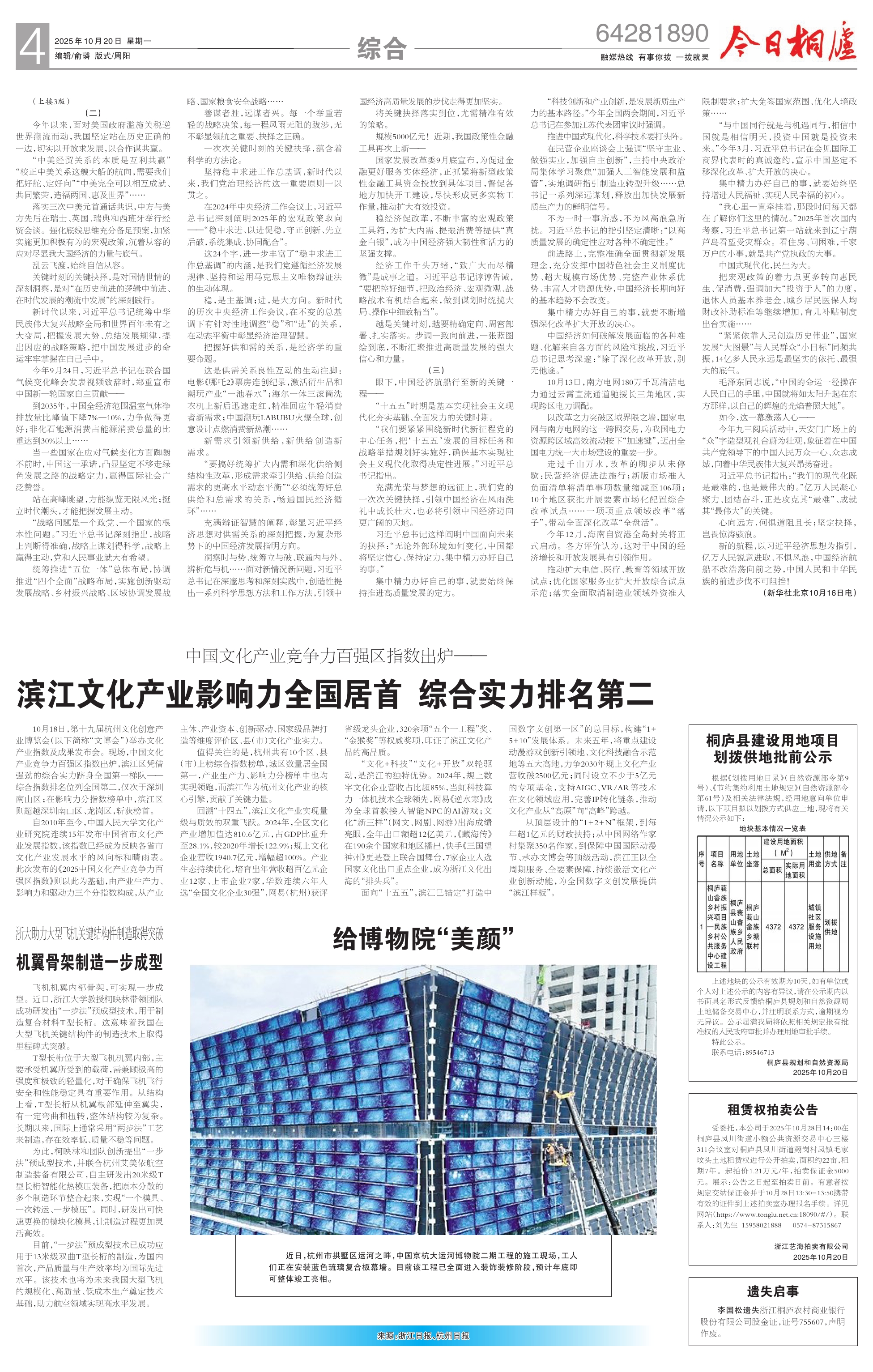 滨江文化产业影响力全国居首 综合实力排名第二