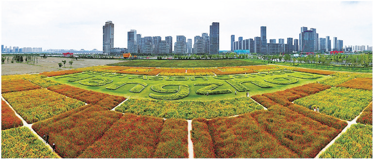 初秋时节的杭州亚运村西南侧大地景观“杭州之窗”里,盛开的硫华菊与百日草等交织成总面积约1.5万平方米的秋日花海,吸引不少市民穿上刚换季的秋装前来打卡。