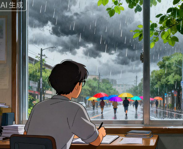 不知过了多久,乌云渐渐散去,如同谢幕的演员。雨声也戛然而止,世界突然安静得能听见水滴从屋檐滑落的声音。我收回目光,继续端起书阅读,却发现自己时不时地走神。明明是我最爱的书,此刻却敌不过窗外那场雨的余韵。是雨太新奇,还是那个共赏雨景的瞬间太珍贵?答案或许早已和雨水一起,渗入了这个平凡的午后。
