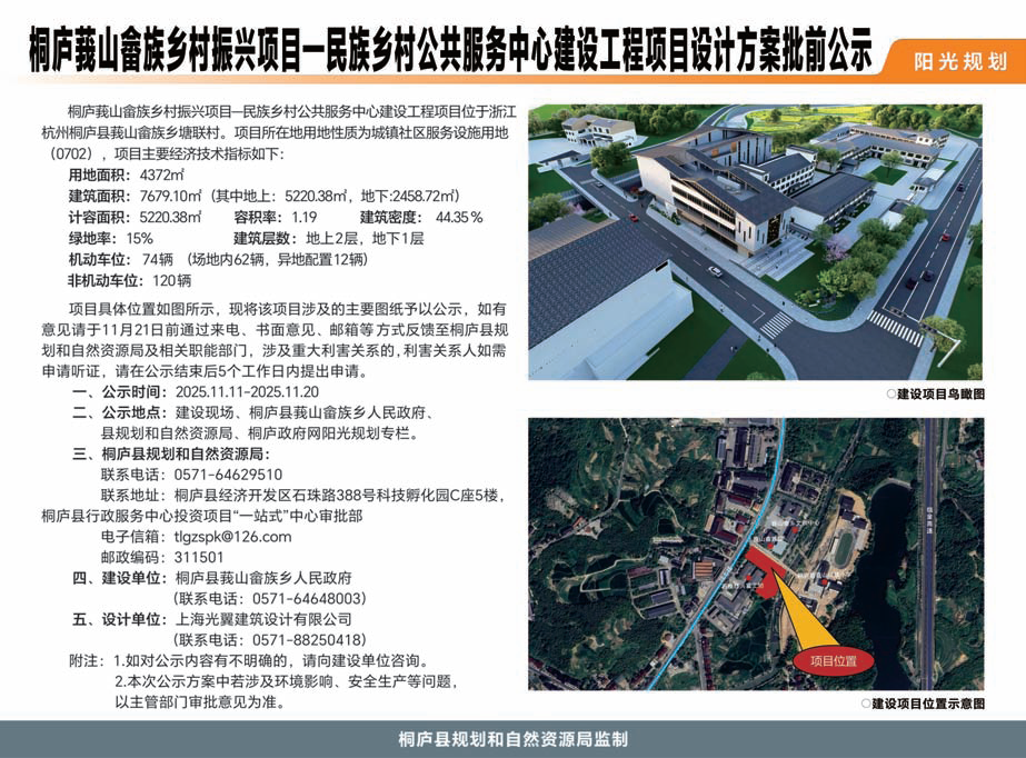 桐庐莪山畲族乡村振兴项目—民族乡村公共服务中心建设工程项目设计方案批前公示