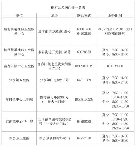 近期,我县已完成对各乡镇(街道)狂犬病暴露预防处置门诊(简称“犬伤门诊”)的重新评审。目前,全县犬伤门诊服务点已增加至7处,市民可根据实际情况就近前往就诊。