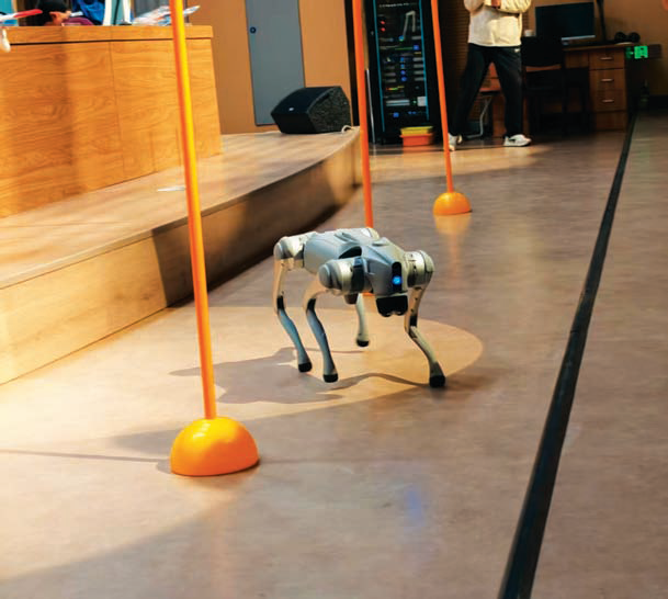 走进“仿生机器人”教室,两只灵动的机器狗和翩翩起舞的仿生蝴蝶瞬间抓住了所有孩子的目光。他们两两合作,一人手举“蝴蝶”,一人操控方向盘,默契配合中,“蝴蝶”仿佛被赋予了生命,在空中飞舞。体验完项目后,学生石奕晨眼中闪着光:“‘蝴蝶’就像真的在飞一样!老师告诉我们,它背后有精密的仪器和编程,我以后也想设计机器人。”