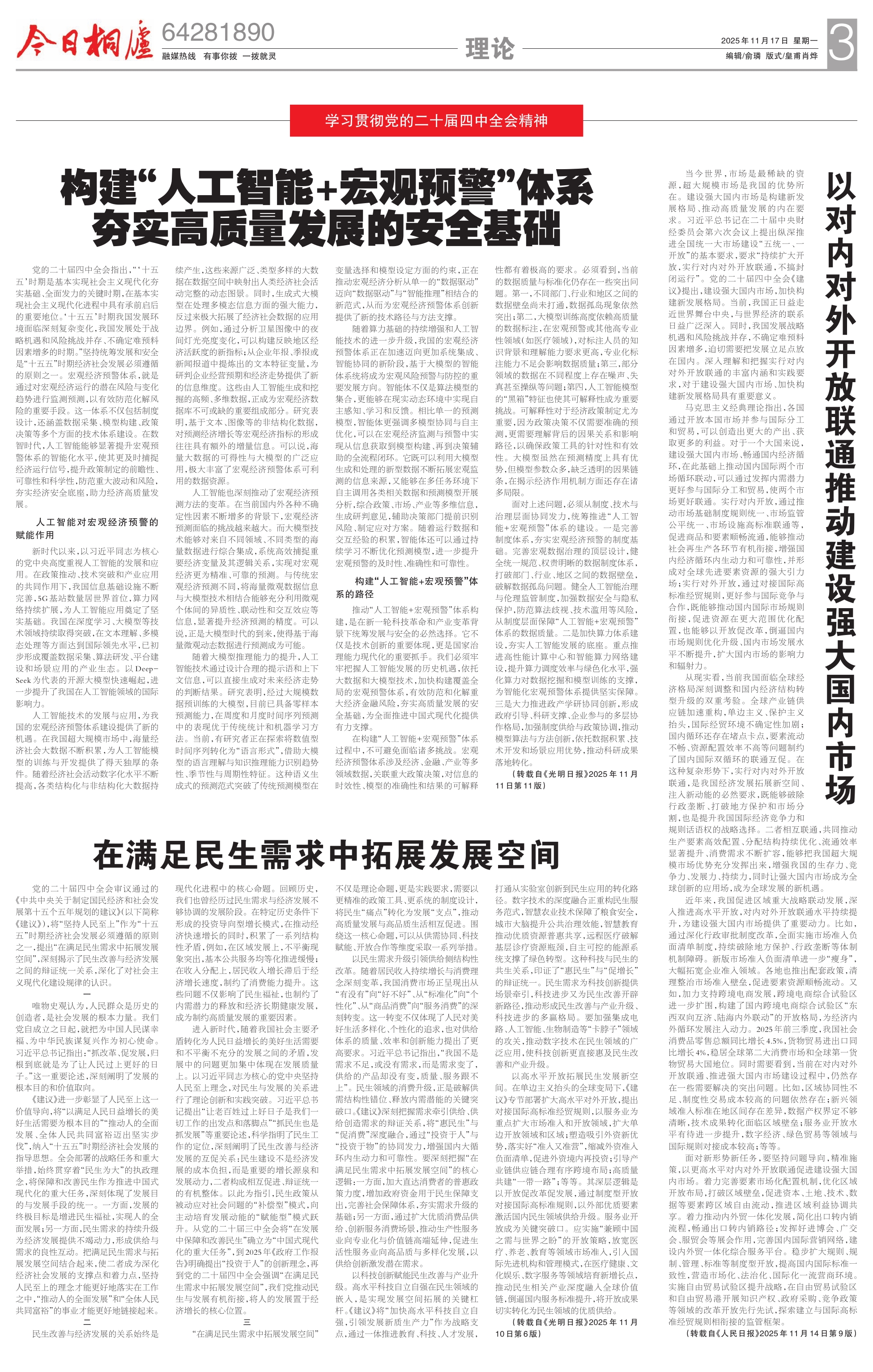 当今世界,市场是最稀缺的资源,超大规模市场是我国的优势所在。建设强大国内市场是构建新发展格局、推动高质量发展的内在要求。习近平总书记在二十届中央财经委员会第六次会议上提出纵深推进全国统一大市场建设“五统一、一开放”的基本要求,要求“持续扩大开放,实行对内对外开放联通,不搞封闭运行”。党的二十届四中全会《建议》提出,建设强大国内市场,加快构建新发展格局。当前,我国正日益走近世界舞台中央,与世界经济的联系日益广泛深入。同时,我国发展战略机遇和风险挑战并存,不确定难预料因素增多,迫切需要把发展立足点放在国内。深入理解和把握实行对内对外开放联通的丰富内涵和实践要求,对于建设强大国内市场、加快构建新发展格局具有重要意义。