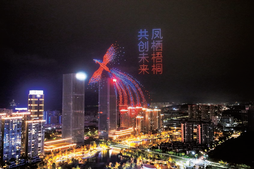 无人机科技光影秀绘出《一群人和一个城的故事》