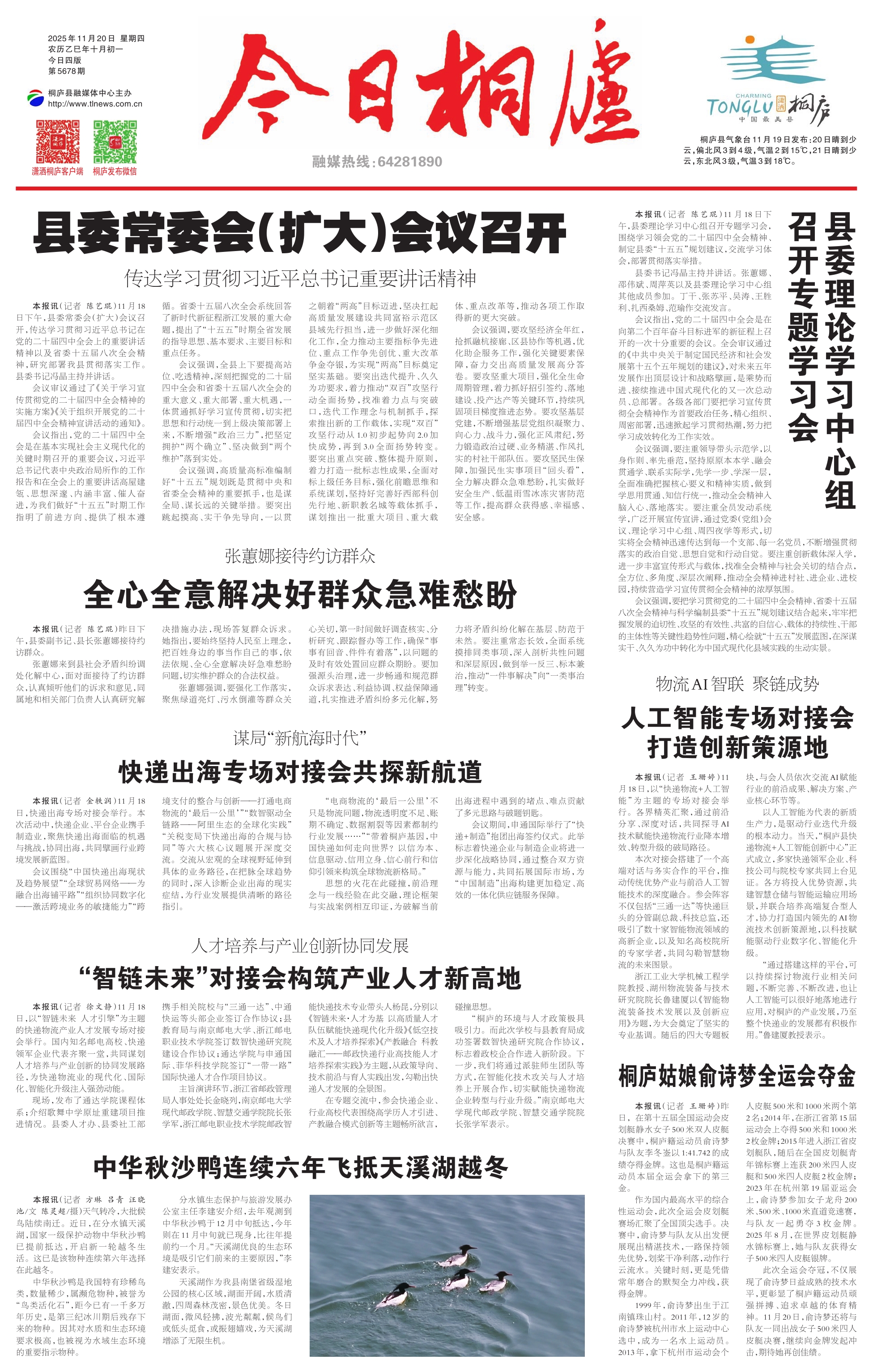 本报讯(记者 方琳 吕青 汪晓池/文 陈灵超/摄)天气转冷,大批候鸟陆续南迁。近日,在分水镇天溪湖,国家一级保护动物中华秋沙鸭已提前抵达,开启新一轮越冬生活。这已是该物种连续第六年选择在此越冬。