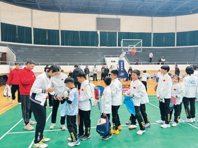 本报讯(记者 姚思雯)体育筑梦,活力校园。11月23日,由中国羽毛球协会主办的“奔跑吧·少年”羽球明星进校园活动走进桐庐县青少年体育学校。中国羽毛球协会青少部于欣民、国内著名羽毛球教练金超、羽毛球世界冠军王琳与学校的青少年运动员们进行互动交流,分享经验、传授技艺。