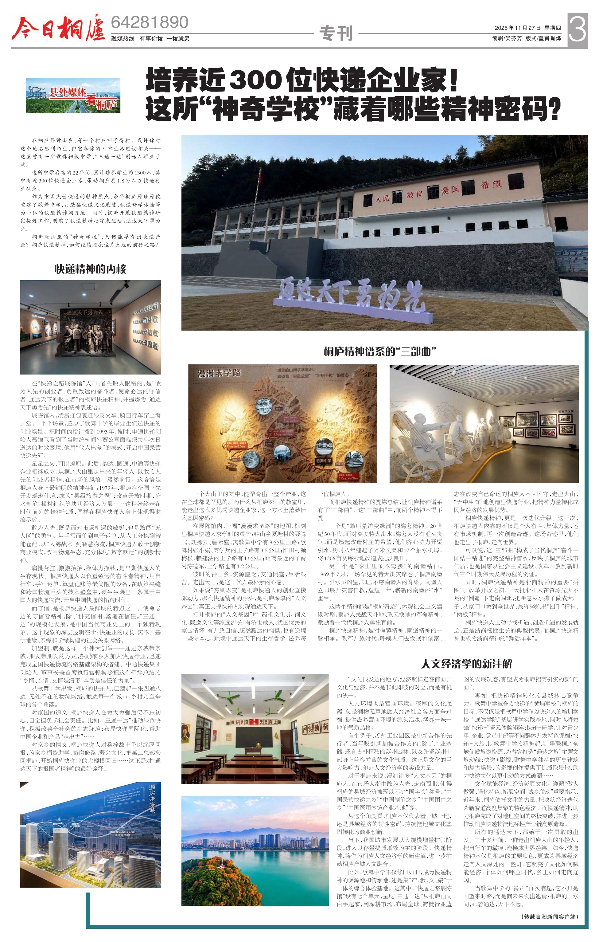 而桐庐快递精神的提炼总结,让桐庐精神谱系有了“三部曲”。这“三部曲”中,前两个精神不得不提——