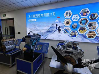 浙江直列动力有限公司5000平方米的组装车间正在紧锣密鼓地施工,展厅内,4缸、6缸、12缸三款活塞式航空发动机一字排开,它们可以应用于固定翼飞机、直升机等多种航空器。