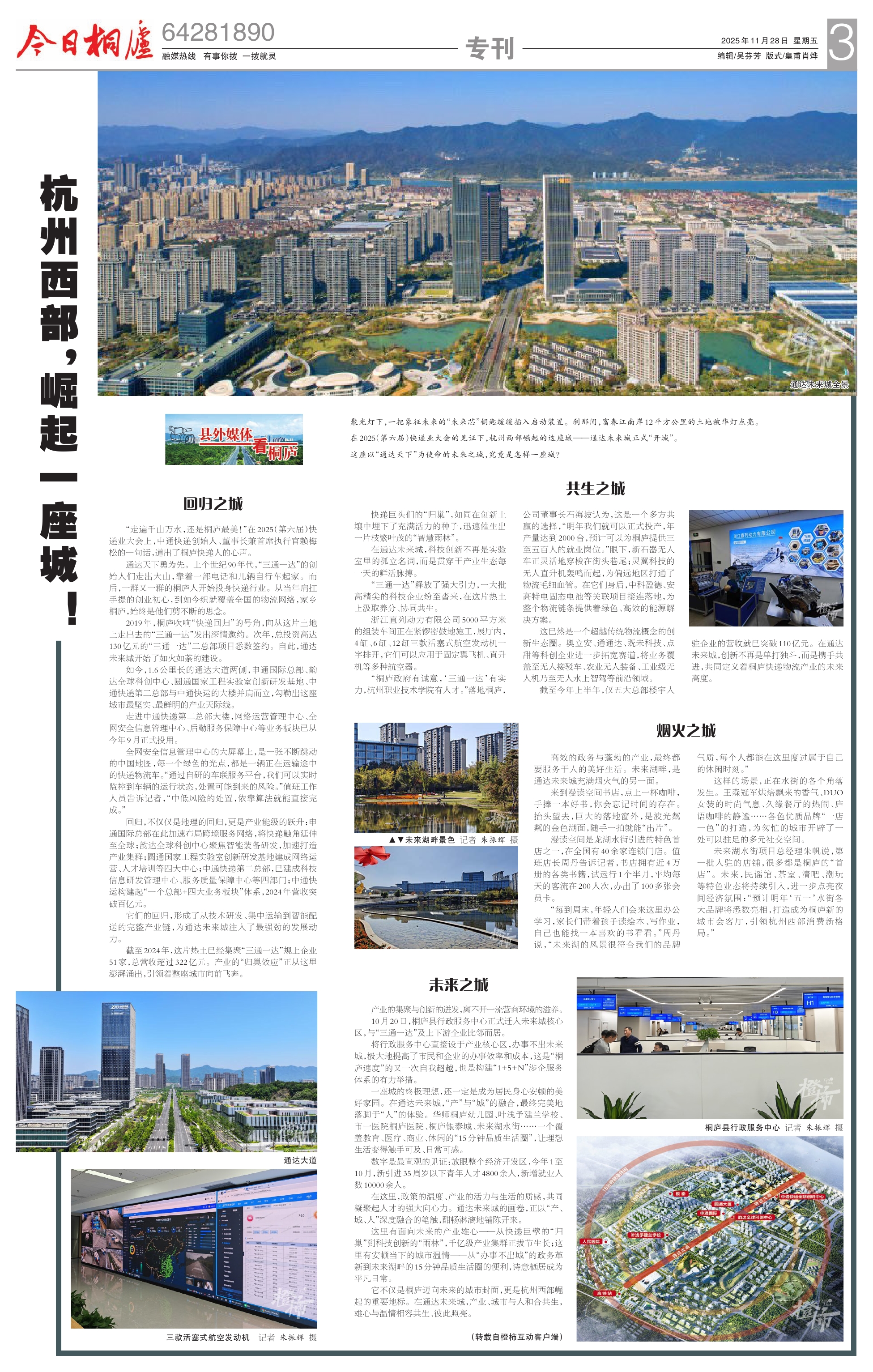 这里有面向未来的产业雄心——从快递巨擘的“归巢”到科技创新的“雨林”,千亿级产业集群正拔节生长;这里有安顿当下的城市温情——从“办事不出城”的政务革新到未来湖畔的15分钟品质生活圈的便利,诗意栖居成为平凡日常。
