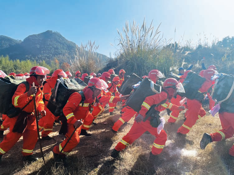 当天14时,演练正式启动。身着橘红色阻燃服、头戴专业防护头盔的森林消防员精神抖擞地投入各项竞赛。