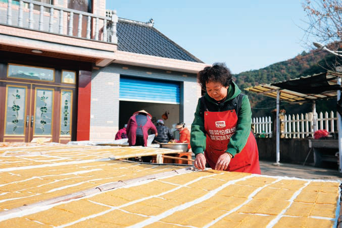 本报讯(记者 代瑞钰)初冬暖阳下,分水镇三溪村的一处农家小院里,阵阵番薯香甜味扑面而来。村民陈金英和丈夫汤跃儿正忙着将混着芝麻的番薯泥均匀涂抹在专用的晒布上。