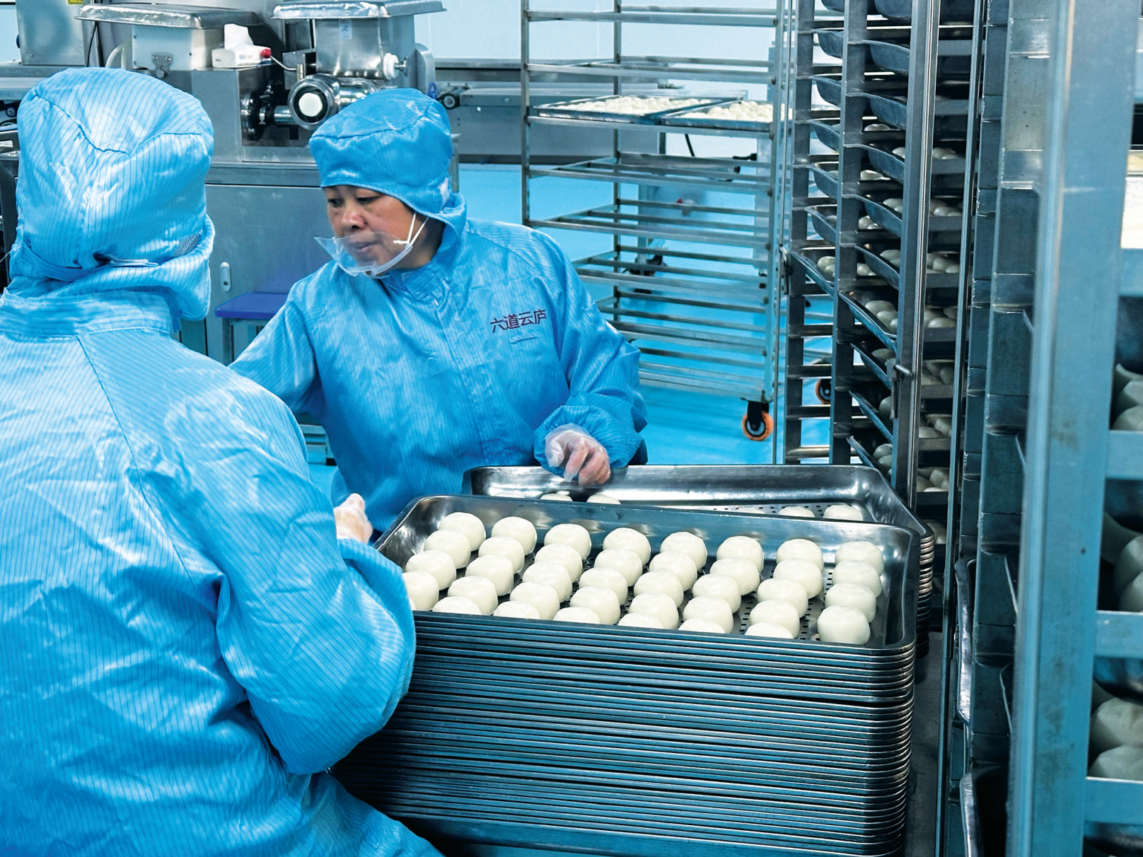 在保留传统风味的同时,六道云庐适应现代生产需求,迭代采用“机械为主、手工为辅”的生产模式。走进企业生产车间,可见雪白的粉团在机器中有序成型,工人则在旁进行细节整理,既保障效率与卫生,也守住了那一口地道口感。